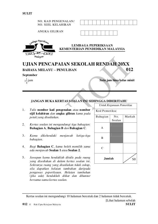 Contoh kertas peperiksaan bahasa malaysia tahun 3 kertas. 17 ogos 2021 selasa masa. SULIT 021 031 Bahasa Melayu Kertas 1 2005 50minit O21 031 UJIAN PENCAPAIAN SEKOLAH RENDAH 2005 LEARNING TO SCORE SET 1 BAHASA MELAYU Kertas 1 Lima puluh minit.